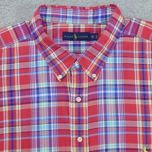 Polo Ralph Lauren Shirt Mens 3XB Red Blue Plaid Button Down Long Sleeve