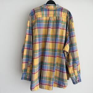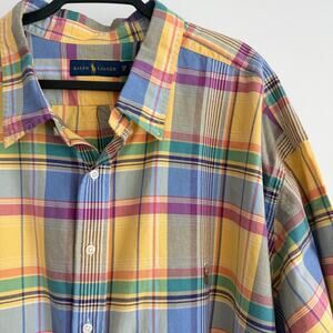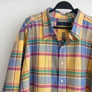 Polo Ralph Lauren Shirt Mens 5X Big Yellow Blue Plaid Oxford Button Up Preppy