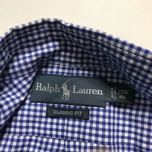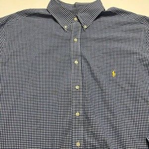 Polo Ralph Lauren Shirt Mens Classic Fit Blue White Checker Long Button Size 2XB