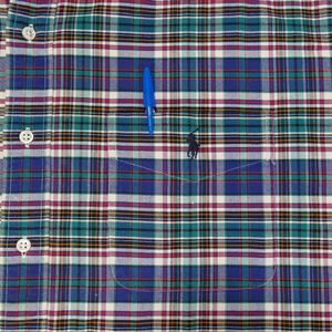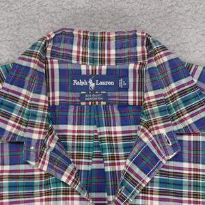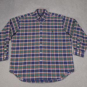 Polo Ralph Lauren Shirt Mens Large Blue Plaid Long Sleeve The Big Shirt Vintage
