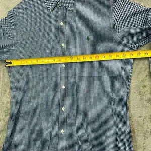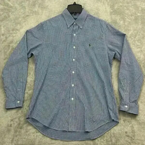 Polo Ralph Lauren Shirt Mens Medium Blue Plaid Check Long Sleeve Stretch Nylon