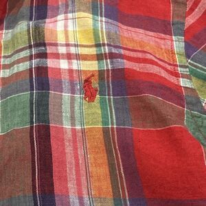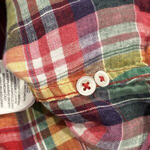 Polo Ralph Lauren Shirt Mens Medium Linen Button Up Plaid Colorful Classic Fit