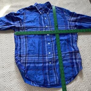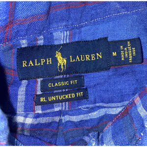 Polo Ralph Lauren Shirt Mens Medium Plaid Classic Fit RL Untucked Blue Gingham