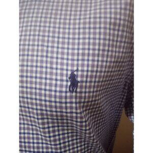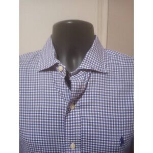 Polo Ralph Lauren Shirt Mens Medium Purple Blue Check Button Down Stretch Preppy