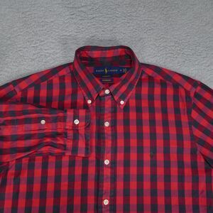 Polo Ralph Lauren Shirt Mens Medium Red Black Check Classic Fit Button Down
