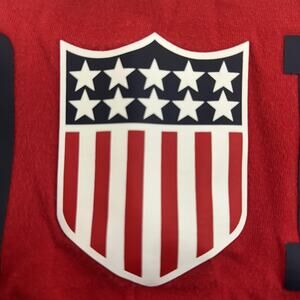 Front details: Large POLO lettering across chest with stars-and-stripes shield patch