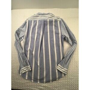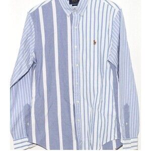 This Polo Ralph Lauren shirt is a rare and unique find, featuring a blue and white striped design with the iconic flesh pony logo. The classic button-down collared shirt is made of 100% cotton and has a regular fit, perfect for all seasons and occasions from business to casual to party. The long sleeves and standard cuff style add to its timeless appeal, making it a must-have for any man's wardrobe looking to add a touch of city and classic style with a colorful twist.