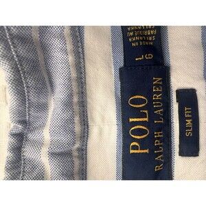 Polo Ralph Lauren Shirt Mens Size L Blue White Striped Flesh Pony Rare Unique