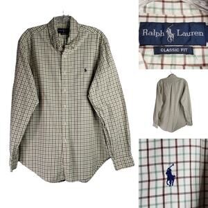 Polo Ralph Lauren Shirt Mens Size Large Fall Plaid LS Button Down Brown Green