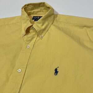 Polo Ralph Lauren Shirt Mens Size Large Yellow Short Sleeve Blake Button Up Pony