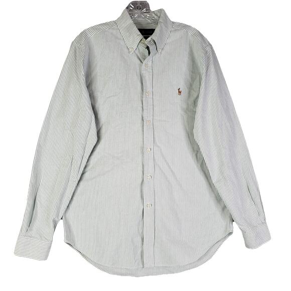Polo Ralph Lauren Shirt Mens Size Medium Green Stripe Button Down Oxford LS