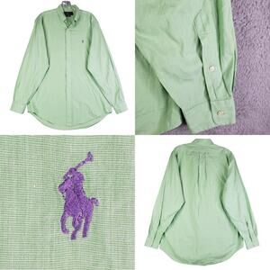 Polo Ralph Lauren Shirt Men's Size Medium M Oxford Green Solid Button Down LS