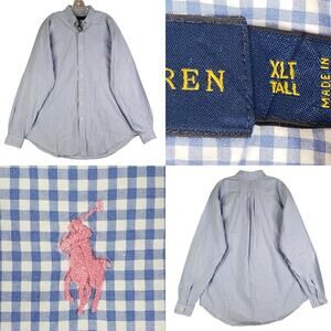 Polo Ralph Lauren Shirt Men's Size XLT Blue Gingham Pink Pony Button Down LS