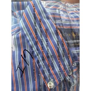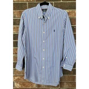 Polo Ralph Lauren Shirt Mens Button Up Blue Orange Bar Stripe 120s Poplin