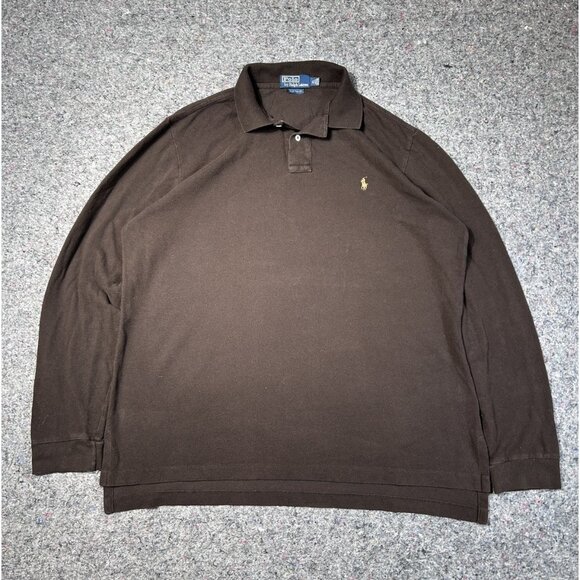 Polo Ralph Lauren Shirt Mens XL BROWN Long Sleeve Golf Pony Vintage