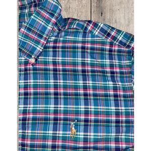 Polo Ralph Lauren Shirt Men’s XL Blue Green Plaid Long Sleeve Blue Pony