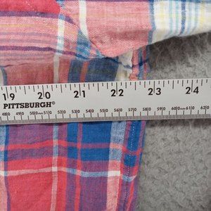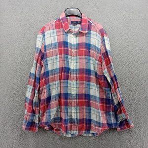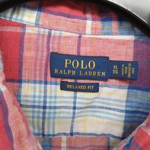 Polo Ralph Lauren Shirt Mens XL Red White Blue Linen Madras Plaid Relaxed Fit