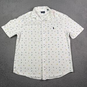 Polo Ralph Lauren Shirt Mens XL White Seahorse Whale Animal Print Button Up