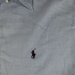 Polo Ralph Lauren Shirt Men's XXL Blue Classic Fit Houndstooth Luxury Preppy