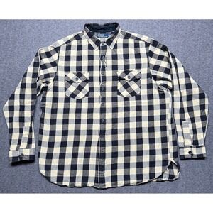 Polo Ralph Lauren Shirt Mens XXL Yellow Blue Buffalo Plaid Check Flannel Button