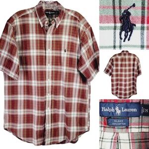 Polo Ralph Lauren Shirt Oxford Blake Men's M Red Plaid SS Button Down Relaxed