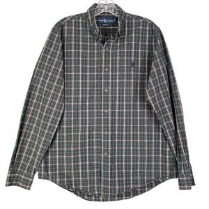 Polo Ralph Lauren Shirt Oxford Button Down LS Mens Size Medium M Green Plaid