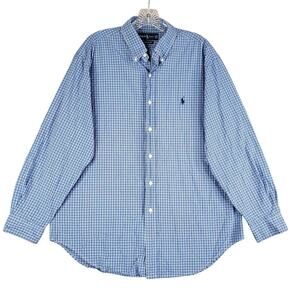 Polo Ralph Lauren Shirt Oxford Button Down Mens Size 16.5 Large LS Blue Plaid