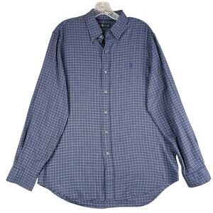 Polo Ralph Lauren Shirt Oxford Button Down Mens Size Large LS Navy Blue Plaid