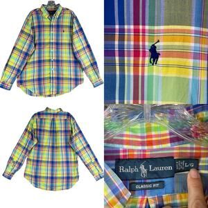 Polo Ralph Lauren Shirt Oxford Men's L Large Plaid LS Button Down Multicolor