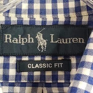 Polo Ralph Lauren Shirt Oxford Mens Medium 16 Blue Gingham Check LS Button Down