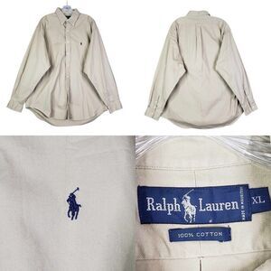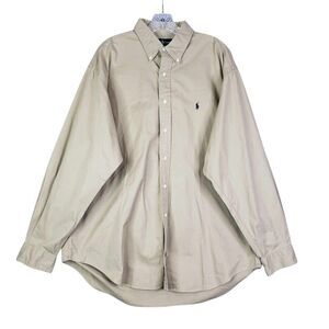 Polo Ralph Lauren Shirt Oxford Men's XL Solid Tan Beige Long Sleeve Button Down