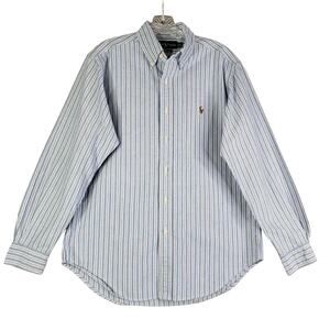 Polo Ralph Lauren Shirt Striped Oxford LS Button Down Blue Mens Medium M 15.5