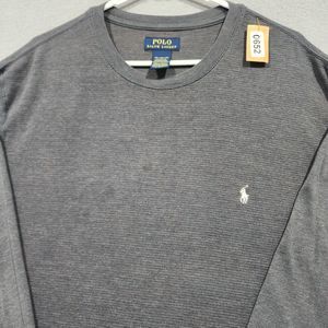 Polo Ralph Lauren Shirt Sweater Pullover Mens XL Gray Long Sleeve White Pony Vtg