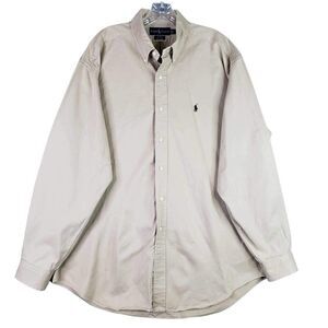 Polo Ralph Lauren Shirt Vtg Mens L Oxford Plaid Blake Button Down LS Tan Khaki