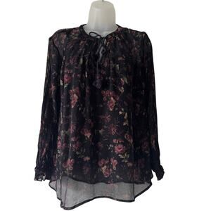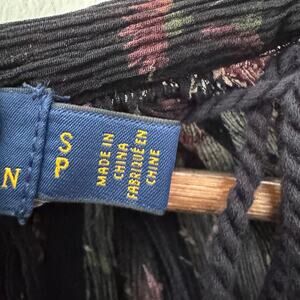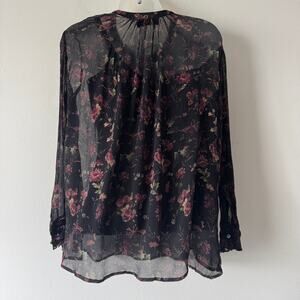Polo Ralph Lauren Shirt Women Small Black Floral Silk Sheer Cottagecore Boho