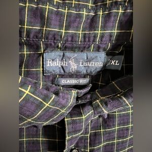 Polo Ralph Lauren Shirt XL Mens Blue Green Plaid Classic Fit Long Sleeve