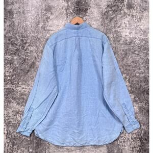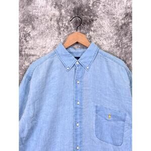 Polo Ralph Lauren Shirt XL Tall Mens 100% Linen Blue Chambray Long Sleeve Button