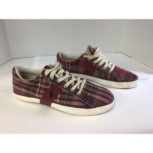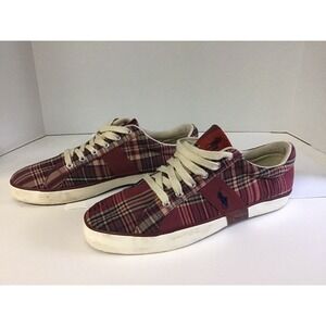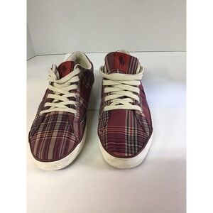 Polo Ralph Lauren Shoes Men’s 12 Canvas Giles Madras Red Brick Plaid Lace Pony