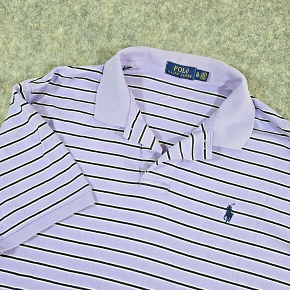 Polo Ralph Lauren Short Sleeve Striped Polo Shirt Lavender Black White XL Logo