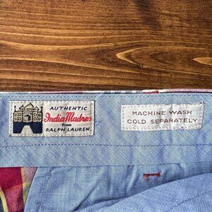 Polo Ralph Lauren Shorts Authentic Indian Madras plaid flat front chino size 32