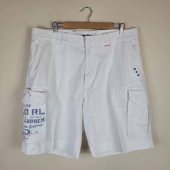 Polo Ralph Lauren Shorts Men 38 White Graphic Cargo Utility Pockets Twill Preppy