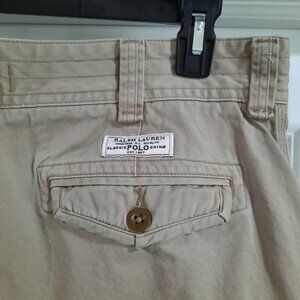 Polo Ralph Lauren Shorts Mens 36 Tan Gellar Cargo Fatigue Military Chino Rugged. Condition is pre-owned, shorts are gently used with minimal signs of wear. Tag size is a Men's 36, see photos for actual waist & length measurements. Thanks for taking a look!
