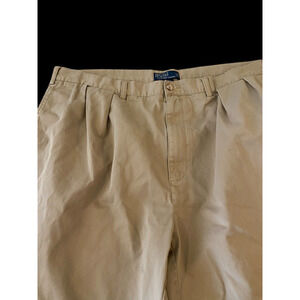 Polo Ralph Lauren Shorts Size 46B Mens Khaki Pleat Front Pony Embroidered Tan
