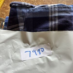 Plaid pattern in multiple shades of blue, with white and gray accents