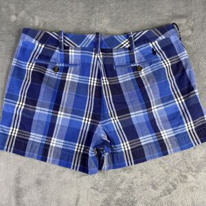 Polo Ralph Lauren Shorts Womens 10 Blue Plaid Linen Blend Preppy Classic Summer
