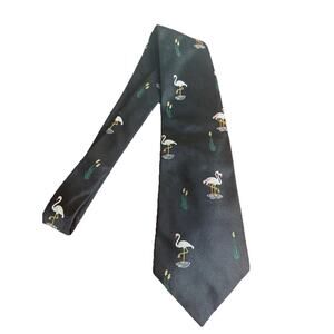 Black or dark gray tie with flamingos - Single Flamingo with cattails.