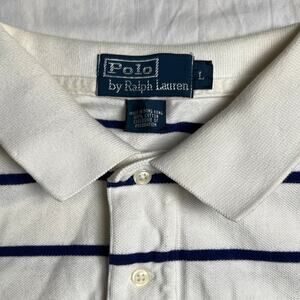 In Pre-owned Condition. see photos for an accurate representation of the Condition of the Polo Ralph Lauren Size Large 100% Cotton Striped White Polo Rugby Short Sleeve