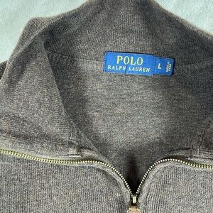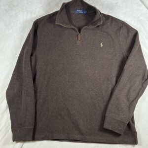 Polo Ralph Lauren Size Large Brown Cotton Pullover Quarter Zip Soft Logo Sweater