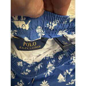 Polo Ralph Lauren size large men’s swim trunks - blue white vacation therm- elephant. Floral. Palm trees. Pineapples.