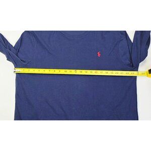 This Polo Ralph Lauren Size XL Men's Navy Red Embroidered Pony Long Sleeve Fashion Tee is a classic and stylish addition to any wardrobe. Made from comfortable cotton material, this solid blue tee features a Crew Neck and a regular fit. The embroidered logo accents add a touch of sophistication to this timeless piece, perfect for all seasons and occasions. With its quality construction and timeless design, this tee is sure to become a staple in any man's closet.